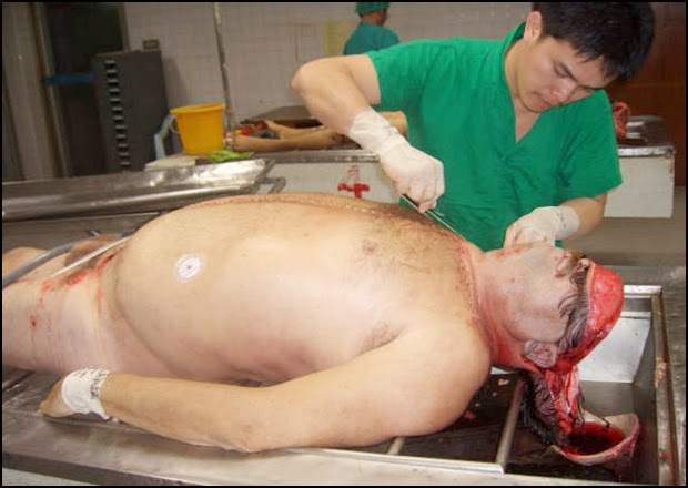 Imagens que parecem ser um grupo de estudantes fazendo estagio em um necrotério